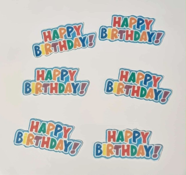 étiquettes comestibles Happy Birthday pour vos cupcakes ou biscuit.